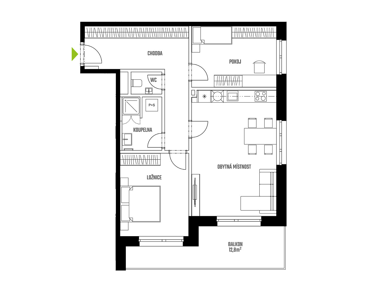 - Pokoj 12,8 m2
