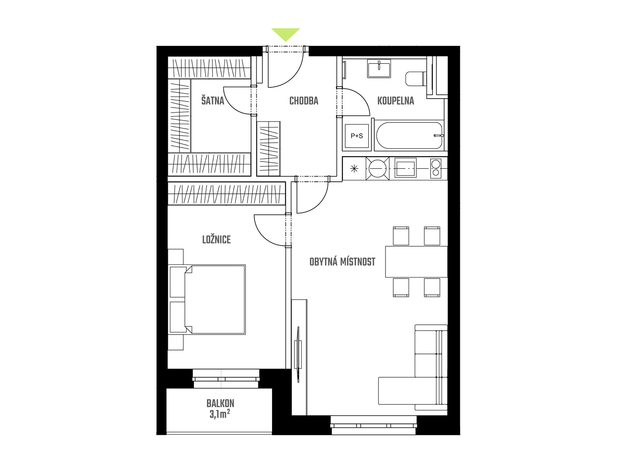 K bytu je možno přikoupit garážové stání přímo pod domem.