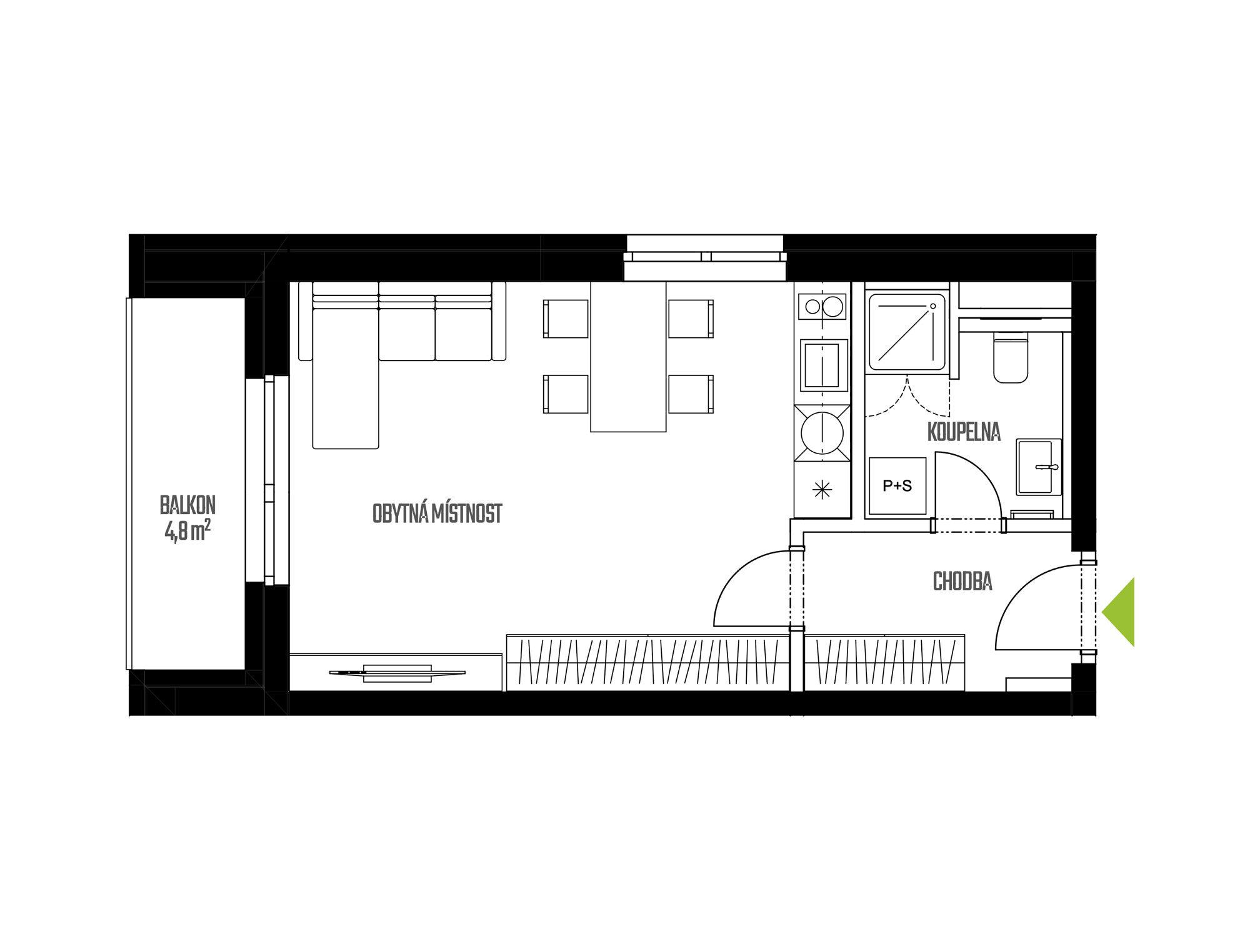 - Celková plocha bytu dle NV č. 366/2013 Sb. 36,1 m2