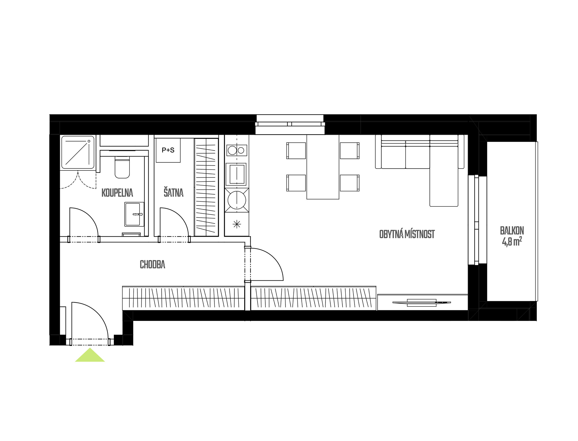 K bytu je možno přikoupit garážové stání přímo pod domem.