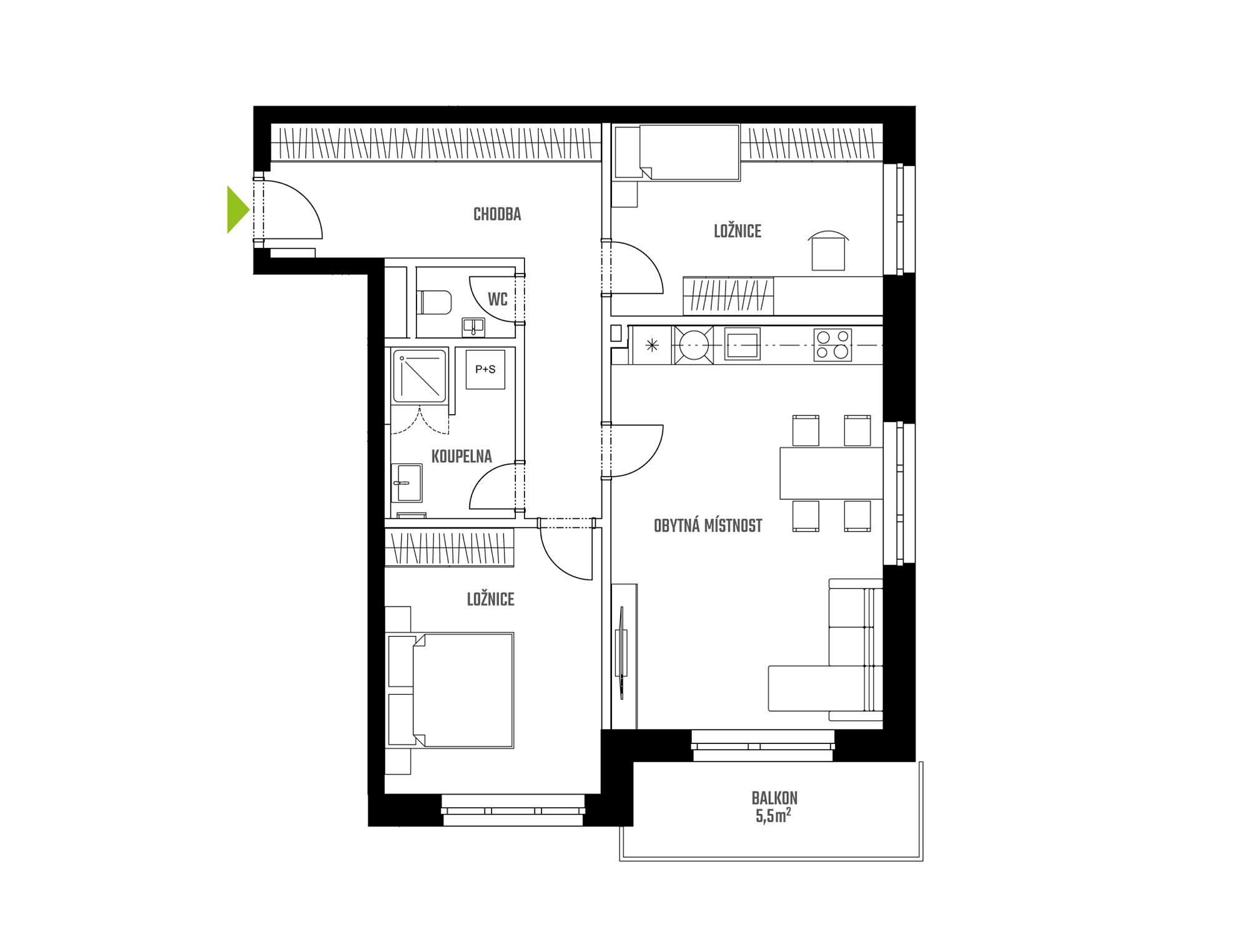 - Celková plocha bytu dle NV č. 366/2013 Sb. 79,7 m2
