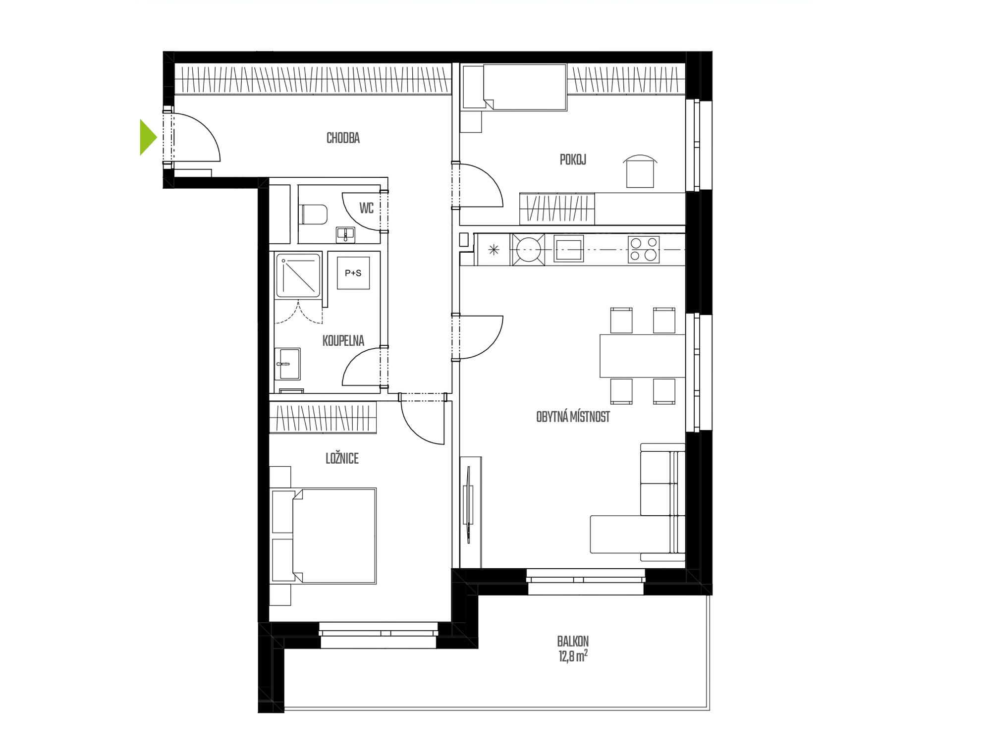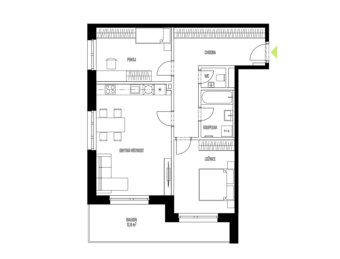 - Pokoj 12,8 m2