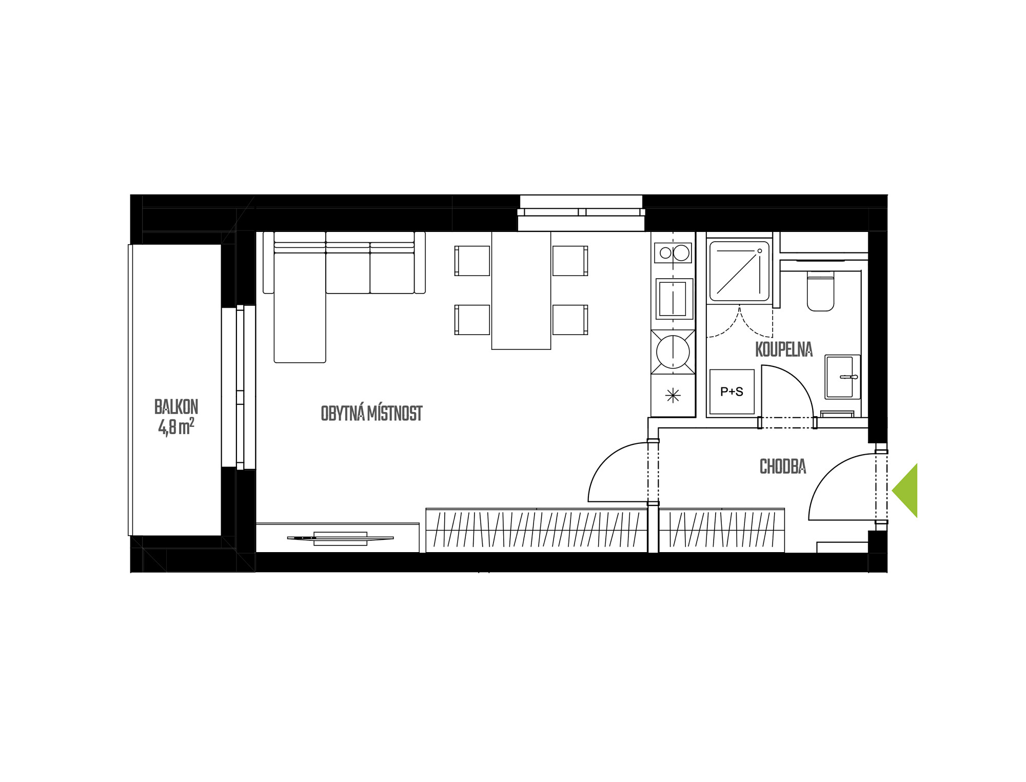 - Celková plocha bytu dle NV č. 366/2013 Sb. 36,1 m2